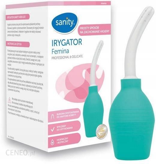 PROFESSIONAL & DELICATE Prosty sposób na zachowanie higieny Irygator przeznaczony jest do wykonywania płukanek pochwy. Stosować zgodnie z przeznaczeniem. Stosowany do irygacji roztwór zawsze skonsultować z lekarzem. Irygatora nie należy stosować podczas ciąży i miesiączki. CECHY PRODUKTU: Fizjologiczny kształt i elastyczna końcówka Pomoc w zachowaniu naturalnego składu flory bakteryjnej pochwy i higieny intymnej Ważny element dbałości o zdrowie kobiety Uzupełnienie kuracji zalecanej przez lekarza Instrukcja użycia: Przed pierwszym oraz każdym kolejnym użyciem należy zmyć wszystkie części oddzielnie, wewnątrz oraz na zewnątrz, a następnie gotować krótko w dużej ilości wody. Zwrócić uwagę na to, aby wszystkie zanurzone części mogły swobodnie pływać w gotującej się wodzie. Gruszkę należy napełnić cieczą płuczącą i wkręcić kankę, następnie wprowadzić elastyczną końcówkę (kankę) do pochwy tak, aby jej krzywizna była zgodna z anatomiczną osią pochwy. Po wprowadzeniu kanki do pochwy delikatnie nacisnąć gruszkę tak, aby płyn wydostawał się przez otwory i spływał po ścianach pochwy. Należy przy tym zwrócić uwagę, aby ciecz nie była odsysana z powrotem do pochwy. Bezpieczeństwo: Nie nadaje się do kuchenki mikrofalowej. Nie stosować środków dezynfekujących. W razie ewentualnego uszkodzenia jednej z części, zniszczyć oraz wyrzucić cały zestaw. Przechowywać w miejscu niewidocznym i niedostępnym dla dzieci.