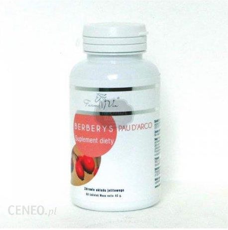 Berberys Pau DArco 60 tabletek Dystrybutor: Farm-VixBerberys Pau DArco zawiera ekstrakt z tabebui (Tabebuia umpetiginosa) i berberysu indyjskiego (Berberia aristata). Tabebuia normalizuje pracę układu jelitowego. Berberys jest korzystny dla zdrowia układu żołądkowo-jelitowego.Składniki: substancja wypełniająca – celuloza mikrokrystaliczna; ekstrakt z kory tabebui (DER 4:1), ekstrakt z korzenia berberysu (DER 10:1); substancja przeciwzbrylająca: stearynian magnezu. Zalecane spożycie: 1 tabletka trzy razy dziennie, popijać wodą. Nie należy przekraczać zalecanej dziennej porcji.Uwaga: Produkt przeznaczony dla dorosłych. Spożywanie produktu jest niewskazane dla kobiet w ciąży, dzieci i młodzieży. Suplement diety nie może być stosowany jako substytut zróżnicowanej i zbilansowanej diety oraz nie zastąpi zdrowego stylu życia. Przechowywać w suchym miejscu, w temperaturze pokojowej, w sposób niedostępny dla małych dzieci. Przed rozpoczęciem spożywania produktu należy skontaktować się z lekarzem….