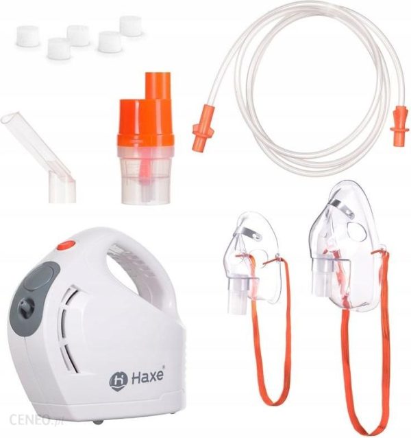 Inhalator Nebulizator tłokowy Galaxy przeznaczony do bezpośredniego podawania produktu leczniczego w formie wziewnej. Inhalator jest niewielkich rozmiarów co sprawia, że jego przenoszenie jest bardzo wygodne. Kompaktowe urządzenie posiada łatwą intuicyjną obsługę za pomocą jednego przycisku.Cechy produktu:- skuteczny w podawaniu leku,- wygodna rączka do przenoszenia urządzenia,- inhalator przeznaczony dla dzieci i dorosłych,- intuicyjna obsługa za pomocą jednego przycisku,- nie zawiera lateksu,- lekki,- łatwy w czyszczeniu.Specyfikacja techniczna:- zasilanie: prąd zmmienny 230V, 50Hz- pobór mocy: poniżej 65W,- przepływ powietrza nebulizatora: 6l,- przepływ powietrza kompresora: 8-10l,- pojemność pojemnika na lek: 2-8ml,- wielkość cząsteczki: 0,5-6µm,- MMAD 2,44µm,- szybkość nebulizacji 0,4ml/min,- pozostałość leku 0,15ml,- poziom natężenia hałasu: poniżej 55dB,- zakres ciśnienia kompresora 30-36psi/280-350 kPa/2,8-3,5 bar- ciśnienie robocze 11,6-20,3 psi/80-140 kPa/0,8-1,4 bar- temperatura robocza 10°C-40°C (50°F-104°F)- wilgotność względna 10-95% RH- temperatura przechowywania -20°C-70°C (-4°F-158°F)- wilgotność przechowywania 10-95% RH- wymiary: 207mm x 113mm x 167mm,- waga: 1,25kg.Gwarancja: 2 lata.Zestaw zawiera:- Kompresor,- nebulizator,- rurka (przewód powietrzny),- ustnik kątowy,- filtr powietrza (5 sztuk),- instrukcja obsługi,- standardowa maseczka dla dzieci i dorosłych.