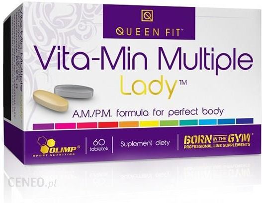 Suplement diety Olimp Vita Min Multiple Lady, to preparat, którego dobowa dawka podzielona jest na dwie tabletki, jedną do stosowania rano oraz jedną wieczorem. Poranna tabletka zawiera składniki odżywcze, mające pokryć zapotrzebowanie organizmu w trakcie aktywnego dnia, wieczorna tabletka wspiera natomiast regenerację organizmu, spokojny sen i nocne procesy metaboliczne. Preparat przeznaczony dla aktywnych kobiet w celu uzupełnienia codziennej diety