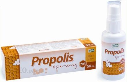 Działanie:- antybakteryjne,- przeciwwirusowe,- regenerujące,- znieczulającezastosowanie:- przy infekcjach górnych dróg oddechowych i stanach zapalnych gardła,- w zapaleniach krtani i tchawicy,- przy infekcjach naskórka (tj. grzybica),- przy mechanicznych uszkodzeniach naskórka (ranach ciętych, zadrapaniach i oparzeniach),- do zmiękczania stwardniałej skóry,- po ukąszeniach owadów.Dawkowanie:Maksymalnie 3 razy dziennie po 3 psiknięcia bezpośrednio na uszkodzone miejsca.Skład:Ekstrakt z propolisu, kwas cytrynowy, woda puryfikowana, skrobinian potasu.Opakowanie: 50 ml