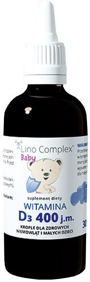 Nazwa produktu:Witamina D3 400 j.m., krople, 30 mlRodzaj produktu:suplement dietyOpis produktu:Witamina D3 400 j.m. jest suplementem diety, który zapewnia właściwą podaż witaminy D3 dla zdrowych niemowląt i małych dzieci.WITAMINA D POMAGA:- w prawidłowym wchłanianiu i wykorzystywaniu wapnia oraz fosforu- w utrzymaniu prawidłowego poziomu wapnia we krwi- w utrzymaniu zdrowych kości i zębów- w prawidłowym funkcjonowaniu mięśni- w prawidłowym funkcjonowaniu układu odpornościowegoUzupełnianie niedoborów witaminy D jest zalecane w okresie karmienia piersią oraz w okresach mniejszego nasłonecznienia, gdyż promieniesłoneczne są niezbędne do prawidłowej syntezy witaminy D w skórze dziecka.Wykaz składników:Składniki: olej MCT (trójglicerydy średniołańcuchowych kwasów tłuszczowych), cholekalcyferol.Ilości składników:1 kropla (0,028 ml) zawiera:- witamina D3 (cholekalcyferol) 10,00 µg (400 j.m.) (200%)*RWS – Referencyjna Wartość SpożyciaIlość netto:30 mlSugerowane dawkowanie:1 kroplę (0,028 ml) dziennie.Nie należy przekraczać zalecanej dawki produktu do spożycia w ciągu dnia.Instrukcja użycia:Przed użyciem wstrząsnąć.Przeciwwskazania:Nadwrażliwość na którykolwiek ze składników produktu.Warunki przechowywania:Chronić od światła, przechowywać w suchym miejscu w temperaturze poniżej 25 °C, chronić przed dziećmi.Nazwa firmy produkującej środek/Adres podmiotu:Przedsiębiorstwo Farmaceutyczne „Ziołolek” Sp. z o.o.ul. Starołęcka 18961-341 PoznańKraj lub miejsce pochodzenia:Wyprodukowano w Unii Europejskiej.Suplement diety (środek spożywczy) nie może być stosowany jako substytut zróżnicowanej diety.Celem suplementu diety jest uzupełnienie normalnej diety.Dodatkowe informacje o produkcie znajdują się w ulotce załączonej do produktu bądź na jego opakowaniu